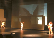 of her dancers dissolves, video projections melt with them on the floor, drops